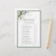 Moderno y elegante juego de ducha de novia "Adivina quién" con hojas botánicas y eucaliptos verdes y grises, y bordeado de verde gris azul eucalipto pálido. Personaliza tus preguntas en un suave y negro, acentuado con una bella caligrafía escrita a mano moderna. Parte de una suite coordinada. Ver suite aquí: https://www.zazzle.com/collections/elegant_eucalyptus_green_botanical_bridal_shower-119330045467288535 Contactar con el diseñador para obtener productos coincidentes. Copyright Anastasia Surridge para Elegant Invitaciones, todos los derechos reservados.