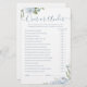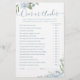 Entreténgase con sus huéspedes con este divertido juego de ducha de novias, con una romántica acuarela floral en azul y verde sabio, y un guión moderno y elegante, sencillo y elegante, ideal para la moderna ducha de novias boho, fiestas de bodas en el jardín botánico. Vea todos los juegos de ducha de novia en colección.