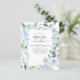 Rosas de flores azules y eucalipto de agua de verdor botánico primavera o verano Boda ducha de novia invitaciones al almuerzo - incluye tipografía de escritura hermosa y elegante con flores botánicas tropicales modernas y vegetación para la celebración especial del Día de la Boda.