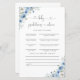 Dusty Blue Ivory Baby Shower Predictions Card. Este elegante y elegante Baby Shower Invitation presenta una preciosa acuarela pintada a mano con la dusty Blue Ivory Floral. Encontrar elementos coincidentes en la colección Dusty Blue Ivory Floral.