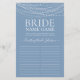 Esta hermosa y polvorienta lámpara azul de juego de la novia Nombre de la novia ducha es sencilla y encantadora, perfecta para cualquier ducha. Este juego divertido y fácil seguro que trae muchas risas a cualquier ducha de novia. Simplemente dé una hoja a cada invitado (no se olviden de los bolígrafos) y deje que empiece la diversión! Te sorprenderá ver cuántas palabras se le ocurren a la gente usando el nombre de la novia. En segundos puede ver cómo se verá su hoja de juego. Simplemente seleccione Personalizar esta plantilla y escriba el nombre de la novia.