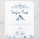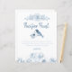 Mantén a los huéspedes entretenidos con este elegante y polvoriento signo de caza de un pacificador azul. Este letrero, con flores delicadas y un ilustracion de pájaro dulce, añade encanto a la ducha de su bebé mientras conduce a los huéspedes a través de un juego divertido e interactivo. Personalizable completo para coincidir con tu tema.