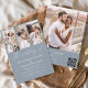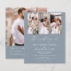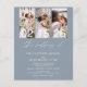 Dusty Blue de presupuesto El Boda de código QR moderno elegante, Cuatro (4) Collage de fotos y Invitación de boda Minimalista de fecha grande. Las tarjetas de Invitación a la Boda contienen una tipografía moderna que son elegantes, simples y modernas para usar después de la minimalista celebración del día de la boda.
