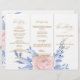Esta Polvorienta Ceremonia De Bodas Rústicos De Flores Azules Y Azules, Con Una Hermosa Acuarela De Flora Rosa Rubor Y Un Arreglo De Hojas De Eucaliptus Azules. Diseñado Para Coincidir Con Nuestra Colección Floral Rosa Rosa Rosa De Rubor. El Programa De Ceremonia boda Lo Personaliza Con Sus Detalles De Manera Fácil Y Rápida, Simplemente Presione El Botón Personalizar Para Reorganizar Y Dar Formato Al Estilo Y La Ubicación Del Texto.