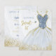 Dusty presupuesto Oro Azul Esparkle Vestido Dulce 16 Invitación de cumpleaños