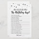 Compra este juego editable y disfruta de alta calidad ¡Qué bien conoces la tarjeta de chica de cumpleaños para tu evento! Esta es una plantilla de juego, ¡Puedes cambiar las preguntas como quieras! Diseño de estrellas negras y blancas.