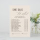 ¡Celebremos a la futura novia con nuestra encantadora ducha de novias dijo que dijo juego! Los huéspedes podrán adivinar quién dijo o qué hizo con estas preguntas divertidas y perspicaces sobre la pareja feliz. Con hermosos diseños de flores silvestres, este juego es el complemento perfecto para sus festividades de ducha de novias. Es una manera deliciosa de aprender más sobre la novia y el novio mientras se crean momentos memorables. ¡Que empiece la diversión y vea quién conoce mejor a la pareja!