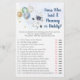 Estas adorables tarjetas de juego de adivina quién lo dijo mamá o papá son una divertida actividad en Baby Shower. Simplemente pasen por ahí durante el Baby Shower donde los invitados tendrán la diversión de adivinar quién dijo cada declaración: mamá o papá. El diseño presenta un astronauta con planetas coloridos con estrellas de Relieve metalizado de oro falsas.