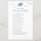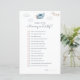 Plantilla de juego "Adivina quién" con temática de viaje azul y marrón que incluye un ilustracion acuarela de un lindo avión con una guirnalda fiesta y nubes.
