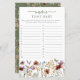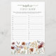 El Boho Verde Llama A Ese Juego De Bebé. Desafía a tus invitados con este juego de nombre para bebé, una actividad divertida y atractiva para tu ducha de bebé. El frente presenta un elegante guión verde salado, guiando a los jugadores para que coincidan con los nombres de sus padres famosos o rimas infantiles clásicas completas. La parte trasera está decorada con un patrón de coordinación de mariposas boho, flores silvestres de época, hierbas secas y un follaje verde salado suave sobre un fondo verde sabio, lo que garantiza un aspecto refinado y pulido. Los cálidos tonos tierra de bronceado, marrón, óxido, terracota, naranja quemado y verde sabio mutado hacen de este juego perfecto para cualquier primavera, verano, otoño o ducha de bebé en invierno. Ya sea que los huéspedes estén a la altura de las trivialidades o simplemente por diversión, este juego diseñado con gusto aportará alegría y competencia amistosa a su celebración.
