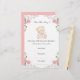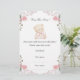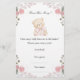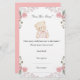 Esta tarjeta de chica para la ducha de bebé es ideal para cualquier tipo de juego o actividad. El diseño incluye un osito de peluche acuarela con arco rosa y un borde floral.