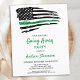 Delgado soldado de la Línea Verde de la Bandera Estadounidense ausente de invitaciones de fiesta. Estas invitaciones modernas del partido Bandera Americana delgada Línea Verde son perfectas para que los soldados se vayan fiesta, los despliegues militares despegan, la celebración de la bienvenida militar a casa, la graduación militar y los retiros militares. Personalice esta invitación a la bandera estadounidense con los detalles del evento, nombre y fiesta de sus soldados. Vea nuestra colección de regalos militares de retiro, regalos de graduación militar, favores partidarios y suministros. DERECHOS RESERVADOS © 2021 Judy Burrows, Black Dog Art - Todos los derechos reservados. El ejército presupuestal se va Fiesta invitaciones delgadas de la línea verde