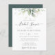Hermosa invitación a la ducha de novias con eucaliptos acuáticos y hojas de oro.