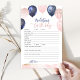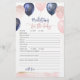 El género de los globos revela predicciones para la tarjeta de bebé. Hay juegos de juego disponibles.
