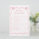 Haz que tu ducha de novia sea inolvidable con nuestro juego personalizado de ducha de novias de vaca rosada: Quién conoce mejor a la novia. Perfecto para las ideas de ducha de novias con temática de arco y ligando el tema de la ducha nupcial, este juego le da un toque divertido a su tema de la ducha de novia. Ideal para las ideas de ducha de novia rosa, este juego de fiesta de arco encaja perfectamente en cualquier tema de ducha de novia rosa o de ducha de novia con arco, lo que lo convierte en un lugar imprescindible para atar las ideas de ducha de nudos y los clásicos juegos de ducha de novias.