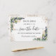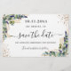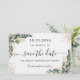 Una fiesta de moda Save the Date para una fiesta de cumpleaños número 40 (o cualquier edad). Un elegante fondo blanco decorado con eucalipto, vegetación, follaje dorado y polvo falso purpurina dorado. Personalice y agregue una fecha, nombre y texto. ... El texto: Save the Date se escribe con un gran guión de estilo con letras a mano y a la moda con guiones.