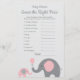 El precio de la ducha de bebé está decorado con elefantes rosas y grises. El juego correcto enumera 10 productos básicos para bebés y los invitados tratan de adivinar cuál era el costo de cada artículo. Este juego se juega mejor con una imagen de todos los artículos - puedes reunir todos los suministros en una canasta de regalo que haría un regalo perfecto para que la mamá sea! Asegúrese de guardar su recibo mientras compra para que tenga la clave de respuesta para este juego. Si lo desea, puede personalizar fácilmente la lista de artículos antes de añadir el juego a su carrito.