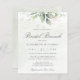 Hermosa invitación al brunch nupcial con eucalipto acuarela y hojas de oro.