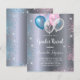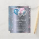 Para un género revelar la ducha de bebé. Un falso fondo metálico plateado. Decorada con globos purpurinas y azules, rosa y blanco, y polvo purpurina falso azul y rosa. Personalice y agregue el nombre de la futura madre y los detalles del fiesta. El nombre y el texto: Revelación de género están escritos con un guión de estilo con letras a mano