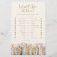 (Elija acabado de papel MATT - NO semi-brillante - para escribir). Entreténgase a sus huéspedes con el juego temático del libro ¿Prefiere?, que presenta unos ilustraciones caprichosos de acuarela en la parte delantera y un patrón de coordinación en la parte trasera. Este juego combina el romance literario con la diversión, atrayendo a sus invitados a opciones lúdicas sobre la futura novia.