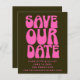 Presupuesto único retro Groovy 70's Hot Pink y Dark Green Save the Date