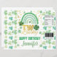 Tema: El Día de San Patricio, el Shamrock arcoiris. Ocasiones: Fiesta por el cumpleaños del niño. Estilo: Agradable, Elegante, Boho. Colores: Verde, Oro, Blanco. Gráficos: Arcoiris, acuarela, falso oro.