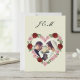Set a romantic tone for your big day with this elegant Save the Date card. The front features a stunning heart-shaped wreath of vibrant red roses and pink blossoms, framing your favorite couple’s photo and custom initials.