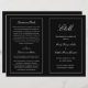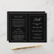 This program is an 8.5 x 11 page that requires you to fold it to assemble. The white border is editable in thickness, size and color. Classic understated black custom color ink wedding program with a modern touch featuring the elegant script of your initials.
