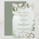 Elegant white roses on a sage green background. Beautifully designed invitation that can be customized with your name. Select the "customize" button to change the font style, color, and size.