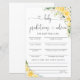 Lámina Elegant Yellow Baby Shower Predictions Card