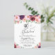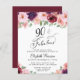Elegante y asequible invitación a la fiesta de cumpleaños número 90 que incluye "90 & Fabulous" en un guión elegante y bouquets acuarelas de color rojo burdeos, rosa y violeta flores.