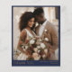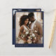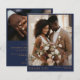 Un diseño de tarjetas de agradecimiento elegante y asequible con un refinado texto de oro falso sobre un fondo azul marino. La disposición muestra una gran foto de retrato en la parte delantera y una foto de paisaje en la parte trasera, creando un aspecto atemporal y sofisticado. La parte trasera también incluye espacio para tu mensaje personal, lo que facilita compartir tu gratitud con estilo. Perfecto para agradecer a los bodas y preservar los recuerdos de su día especial.