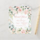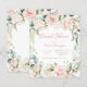 Elegante fondo blanco con rosas rosados y marfil con un marco de acuarela floral y vegetación de hojas y viñas rodeando la sofisticada coordinación de escritura rosa invitación a la ducha de novia en una hoja de papel para los que tienen presupuesto. Esta es una bella invitación. La ducha de novia perfecta invita a cualquier temporada de boda.