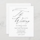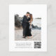 Una elegante invitación a la boda blanca y negra con presupuesto, con escritura moderna y texto clásico. La parte de atrás tiene una foto y el código QR RSVP. Haga clic en el botón de edición para personalizar de este diseño.
