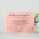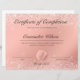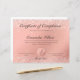 Un magnífico Certificado de Finalización de lujo que los graduados pueden colgar orgullosamente en su oficina o en la pared de su estudio. Este diseño presenta caligrafía clásica y elegante. Perfecto para las academias de belleza, programas de capacitación tecnológica, escuelas de cosmetología, instructores y más. Diseño fácil de personalizar. Por favor, tenga en cuenta que se simularán detalles de oro y purpurina rosa.
