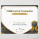Un certificado de finalización moderno y elegante que presenta un diseño profesional negro y dorado. Perfecto para cursos, programas de capacitación, talleres, logros empresariales, reconocimientos corporativos y certificaciones educativas. Ideal para escuelas, empresas, entrenadores y organizaciones que buscan un certificado de finalización clásico y formal.
