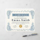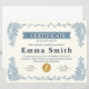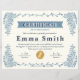 Un refinado certificado de logro que presenta un elegante borde floral azul y una disposición clásica. Perfecto para reconocer logros, premios a empleados, éxito académico, aprecio corporativo o eventos formales. Este diseño atemporal ofrece una apariencia profesional y sofisticada adecuada para escuelas, empresas y organizaciones.