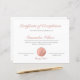 Lámina Elegante certificado de oro Rosa de finalización