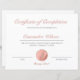 Un certificado de cumplimiento de estilo elegante y profesional. Este diseño presenta caligrafía clásica y elegante. Perfecto para las academias de belleza, programas de capacitación tecnológica, escuelas de cosmetología, instructores y más. Diseño fácil de personalizar. Por favor, tenga en cuenta que se simularán detalles de oro y purpurina rosa.