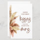 Elegante: ¿Cuántos Besos de juego Rótulo? Disfrute de su ducha de novia o de su fiesta de soltera con esta tarjeta de juego de personalizable. Un ramo tropical acuático con pampas secas. CÓMO JUGAR - Antes del fiesta, cuenta el número de besos y escribe el número en un pedazo de papel. -Mostrar este cartel gratuito "Cuántos besos para la novia" con las reglas del juego y un gran frasco o contenedor con los besos de Hershey. -Enséñale a los invitados que escriban sus suposiciones de cuántos Besos hay en el frasco en la hoja de papel. -El invitado que adivinó más cerca del número sin ir por ahí gana el frasco de Besos como premio.
