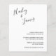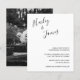 Invitación de boda económica moderna con un diseño sencillo con sus nombres en un guión manuscrito elegante en la parte superior izquierda y los detalles de su evento en alineación derecha en la parte inferior derecha. El trasero tiene tu foto favorita. Todos los elementos de diseño están en blanco y negro y pueden cambiarse en la herramienta de edición de diseño. La letra a mano de moda añade un toque romántico a este diseño minimalista.