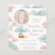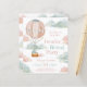 Un pequeño género económico revela la invitación a la fiesta. En un fondo blanco, se muestra un elegante globo de aire caliente rosa llevando una cuna azul. El cielo está decorado con elegantes nubes brillantes de color rosa y dorado azul. Personalice agregando todos los detalles del evento y del contacto al principio y al final.