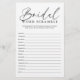 Haz que tu ducha de novia sea inolvidable con el Elegante juego de Palabras de Brida de Script! Este moderno juego de ducha de novia clásico presenta un diseño minimalista en blanco y negro con elegantes letras de guión. ¡Este juego de peleas de palabras de novia seguro será un éxito en tu ducha de bodas! La escritura y el diseño sencillo pero a la vez moda añaden un toque de sofisticación, mientras que la palabra scramble mantiene entretenidos a los huéspedes. Mientras se unen para desentrañar palabras como BOUQUET, HONEYMOON y BRIDE, ¡a la risa y a la competencia amistosa le siguen! Ideal para una novia moderna que quiere una ducha de novia con juegos clásicos y un estilo elegante y minimalista. El juego de palabras de novia con guión elegante ayudará a crear recuerdos que valorar en los próximos años.