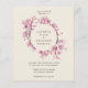 Elegante invitación a bodas con presupuesto floral con una corona de flores de flores de flores de cerezo pintadas con acuarela, con sus nombres dentro, sobre un fondo de marfil. Este diseño de moda es genial para una celebración primaveral.