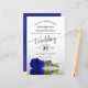 Esta hermosa invitación a una boda asequible presenta un diseño romántico con un único rosa de color azul real de tallo largo que se pone a su lado y se refleja en una piscina de agua. La tipografía presenta caligrafía de escritura de encaje y un diseño sofisticado. La parte posterior es de color azul cobalto de mármol. Una forma maravillosa de invitar a tus amigos y familiares a compartir tu alegría en tu día especial.