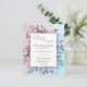 Una ducha de bebé o un género económico revelan la invitación. En un fondo de color azul y rosa, el diseño se compone de una caja de texto crema rodeada de elegantes flores azules y rosas. El texto de la tipografía dice Bebé tu nombre. Personalice agregando todos los detalles del evento y del contacto al principio y al final.