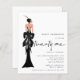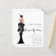 Elegante Lady Trendy Script Fiesta 21º cumpleaños. Un precio económico menor 4,5" x 5,6" alternativa. Disponible en un ALMACENAMIENTO DE TARJETAS SEMI GLOSS 110 lb que es la opción predeterminada (recomendada para invitaciones, similar al espesor de una postal), O UN ALMACENAMIENTO DE PAPEL DE LADO SATIN FINISH 80 lb (ideal para los gabinetes). Un ilustracion de la vista de atrás de una mujer glamurosa en negro y Twenty one está en un guión estilo de escritura a mano muy divertido. Personaliza fácilmente el resto del texto a tus propios detalles.