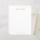 Elegante guión dorado, letra personalizada papel estacionario con monograma. Delantera arriba - nombre en texto de guión dorado, parte inferior delantera - línea de dirección en texto plano. Atrás abajo: monograma de guión.
