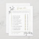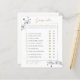 Ramas de orquídeas blancas, dibujadas a mano con lápiz de grafito, decoran esta sencilla y elegante tarjeta de juego de personalizado "Adivina quién..." que incluye un delicado marco de oro clásico y una moderna caligrafía de escritura. Personalízalo completamente, con el nombre de la novia y la fecha y cada una de las diez preguntas.