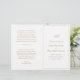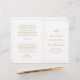 Programa de Bodas plegadas de estilo tradicional con un diseño sencillo y clásico con su monograma en la parte superior junto con los detalles de su boda rodeados de un borde. Todo el texto está en un elegante guión falso dorado y puede cambiarse a cualquier color que desee haciendo clic en el botón "personalizar". Estos programas de boda plegados con un diseño atemporal son perfectos para un boda formal y se imprimen en hojas de papel para una opción económica.